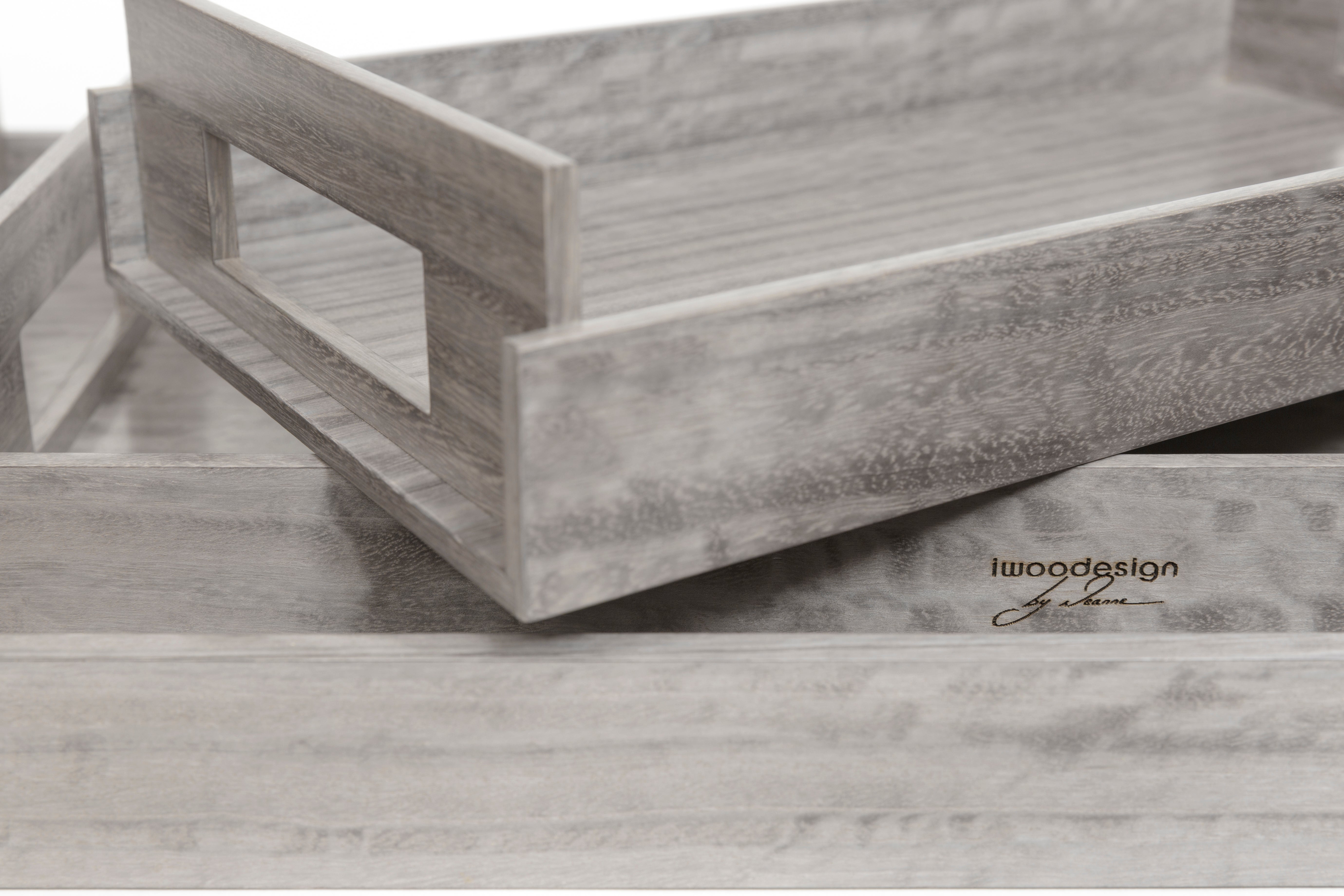 Stunning luxury trays, contemporary in design and versatile. Elegant and forever useful in any room. Luxurious wood finish. These trays are easy to lift, handles on either end, and light in weight.